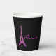 Glam Paris thematisierte 16 . Geburtstag Geburtstagsparty-Tassen, mit rosa Glitzer, der Eiffelturm auf schwarzem Hintergrund. Rosa benutzerdefinierter Text lautet Paris. Passende Servietten, Teller und Einladungen stehen zur Verfügung.