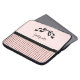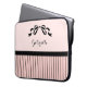Ein schicker, blasser Pariser Pink und schwarzer Pinstripes Muster 15'' Laptop-Ärmel mit einem gürtelschwarzen Band, das in einen niedlichen Bugschablone gebunden ist. Personalisieren Sie dieses feminine hellrosa Französisch inspiriert dünne Streifen Design durch Hinzufügen Ihres Namens.
