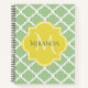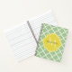 Ein elegantes pastellgrünes Quatrefoliennotebook mit klassischem Format und einem hellgelben Monogramm-Abzeichen, das Sie personalisieren können, indem Sie Ihren Namen und die Initiale zu. Dies ist Teil der Nilgrün- und Wiesenlark Gelben Frühlingskollektion.