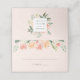 Moderne, blumengeschmückte Platzkarten mit Pfirsich- und Cremefarben-Pfannkuchen und Rose mit üppiger Eukalyptus-Vegetation vor einem rot-rosa Hintergrund. Im Inneren ist ein subtiles Damast-Muster erkennbar. Entworfen, um sich mit unserer Blush & Gold Script Wedding Suite abzustimmen.