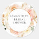 Individuelle runde Aufkleber-Etiketten oder DIY-Kuchen-Topper zeigen einen herrlichen Blumenkranz in Aquarellfarbe in einer schönen Mischung aus Pfirsichcreme, Rose und Champagner. Möglichkeit, alle Textabschnitte anzupassen.Zwei Größenoptionen und mehrere Formularoptionen zur Auswahl. Wenn Sie es als Kuchentopf verwenden, stecken Sie einfach einen Zahnstocher zwischen zwei Aufklebern ein. Sammlung mit den koordinierenden Produkten zur Verfügung!