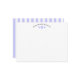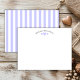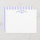 This stationery note card presents three thin cracked hearts in periwinkle placed beneath your personalized arched name. The back features white and periwinkle vintage stripes that give the card a calm and modern feel. Perfect for everyday notes, sweet messages, or a custom stationery set.
