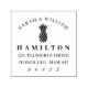 Die Briefmarke aus tropischer Rücksendeadresse aus Gummi-Kautschuk zeigt Ihre Vornamen in einer Silhouette von Ananas, die anmutig geschwungen ist, mit Familiennamen und Rücksendeadressen.
