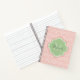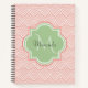 Ein elegantes, hellrosa Deko-Skallop-Muster Standard-Notebook mit einem weichen grünen Quarrefolien-Abzeichen, das Sie ganz einfach mit Ihrem eigenen Monogramm und Namen personalisieren können. Dies ist Teil der blühenden Dahlia Scallops Nile Green Monogram Spring Collection.