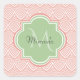 Chic Pink Arched Scallops Soft Green Monogram Name Quadratischer Aufkleber