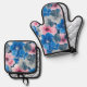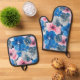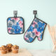 Chic Pink Blue Floral Brautparty Ofenhandschuh & Topflappen-Set