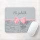 Chic Pink Bow Girly Parisian Ephemere und Name Mousepad