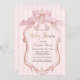 Chic Pink Bow Retro Frame Striped Baby Shower Einladung