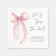 Chic Servietten für Ihr Brautparty mit einer eleganten Aquarellfarbe eines hellrosa Coquette Bogens, "She's band the knot" in einer modernen Kalligraphie-Schrift, und der Name der Braut und das Duschdatum in einfacher Schrift.