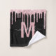 Dieses moderne Glitzer und Glam Bad Handtuch-Set verfügt über einen Rand von Imitaten rosa tropfenden Glitzer mit Glitzern an der Spitze. In der Mitte ist Ihr Monogramm Initial in Rosa mit Ihrem Namen in einer eleganten Hand gezeichnet hellrosa Skript auf einem Hintergrund von schwarz. Entworfen für Sie von Extreme T-Shirts!