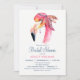 Chic Pink Flamingo Brautdusche Einladung. Das Angebot umfasst rosa Flamingo mit einem Boho Federn Muster auf der Rückseite.