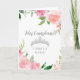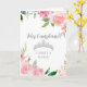 Diese wunderschöne rosa, blühende Feliz Cumpleaños Karte zeichnet sich durch hübsche Aquarellfarben-Blume und grüne Blätter über einem funkelnd silbernen Tiara aus. Eine hübsche weibliche Geburtstagskarte für das 15. Geburtstag Ihres Teenagers. Kokette und weibliche Pfingsteine schaffen einen niedlichen Rahmen um die elegante Quinceañera-Botschaft.