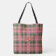 Chic Pink & Green Plaid Tote Bag with Monogram
