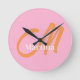 Chic Pink Orange Monogram Runde Wanduhr