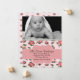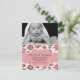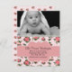 Elegante Ankündigung der Geburt eines Fotos in einem rosa Rosenmuster, mit Grafiken einer Elfenbeinspitze, ganz oben. Ein individuelles Baby-Foto schmückt die Oberseite der Flachkarte, mit einem rosa dekorativen Band-Textbereich, über das Blumenmuster, mit schwarzem Text, der auf die individuellen Bedürfnisse Ihres Babys zugeschnitten ist, mit den Geburtsinformationen Ihres Babys. Die nette und stilvolle Art, die Ankunft Ihres kleinen Mädchens, zu Freunden und Familie anzukündigen.