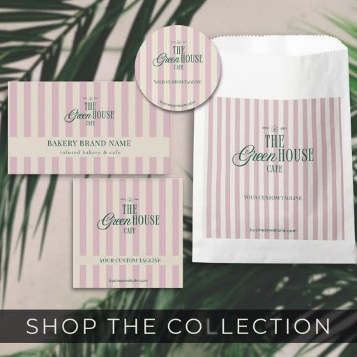 Chic Pink Stripes Green Bakery Logo QR Price Werbekarte