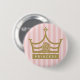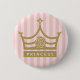 Chic Pink Stripes und Gold Rose Princess Crown Button