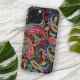 Hellblau, hellviolett, lebhaft limig grüne Pastelltöne, warmes Fuchsienrosa, lila und lebendiges türkisfarbenes Aqua-Aqua-Fantasy-Paisley-Wirbel auf schwarzem Hintergrund. Schönes, modernes und cooles Cover für den Trend-geschickten und kunstliebenden angesagten Trendsetter, künstlerischer Motif-Liebhaber, der will, ihr Handy vor Staub und Schmutz, Abnutzung und Tränen zu schützen. Dieses Design ist in iPhone 6, 7, und 8 Plus, 10 oder X, XR, XS, 11, 12, 13 Mini, 14, und 15 Plus Pro Max Handy Hüllen erhältlich. Zeigen Sie Ihren Stil, sehen Sie in der Mode und fühlen Sie sich stilvoll mit einem einzigartigen Design auf einem mobilen Zubehör Ihrer Wahl.