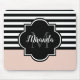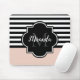 Chic Pink und Black Wide Stripes Name und Monogram Mousepad