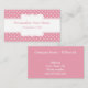 Fügen Sie einer beruflichen Visitenkarte einen trendigen Retro-Stil hinzu. Personalisieren Sie eine pink & white polka dot Visitenkarte, um Ihren Namen, Beruf/Titel, Ihre Firma und Ihre Kontaktinformationen zu markieren. Schwarz, Hot Pink & Limon schafft eine einzigartige Präsentation. Visitenkarten machen es den Leuten leicht, sich an dich zu erinnern. TIPP: Machen Sie Ihre Visitenkarte noch unvergesslicher und fügen Sie einen personalisierten Memory-Haken auf Ihre Karte, bevor Sie sie jemandem geben.