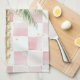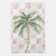 Chic Pink White Squares Gold Palm Tree Geschirrtuch