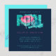 Ein Party mit tropischem Pool und auf der Suche nach einer geeigneten Einladung? Dieses schicke, coole und trendige Design besticht durch Textkunst mit einem grün-blauen Swimmingpool, einem warmen rosa Float und moderne Typografie mit Wasserspritzen auf einem dunkelblauen Hintergrund. Fügen Sie einfach Ihre Party-Details zur Karte hinzu und bereiten Sie sich auf das Party vor!