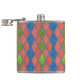 Eine schicke Hip Flasche mit einem Imitat-Patchwork-Muster aus Diamantformen in Mohnrot, Leaf Green und Royal Blue. Teil der Posh & Painterly 'Poppy Fields' Kollektion.