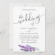 This modern and elegant wedding invitation features refined “the wedding of” calligraphy in dark grey on a crisp white background, accented by delicate purple lavender artwork. The minimalist design blends timeless style with a soft botanical touch, making it perfect for garden, rustic, boho, or countryside weddings. Easily customise the text to create a truly unique and personal invitation for your special day