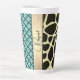 Auf dieser stilvollen Tasse befindet sich ein elegantes Quarrefolienmuster auf einem türkisfarbenen Hintergrund mit einem schimmernden goldenen Band, wo es personalisiert werden kann, dann neben dem Band ist eine exotische Giraffe-Design, die angesagte schicke Farben kreiert.