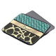 Ein elegantes Quatrefolienmuster in türkisfarbenem Hintergrund, ein goldenes Band für die Personalisierung und darunter ein stilvoller Giraffenprint für tierische exotische Villen.
