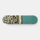 Auf diesem stilvollen Skateboard ist ein elegantes Quatrefolienmuster auf einem türkisfarbenen Hintergrund, zusammen mit einem goldenen Band, wo Sie es anpassen können, um es einzigartig zu Ihrem eigenen dann unten, das ist ein exotische Giraffe-Design, das angesagte chic vibes.