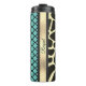Auf diesem stilvollen Thermalwäscher ist ein elegantes Quatrefolienmuster auf einem türkisfarbenen Hintergrund mit einem schimmernden goldenen Band, wo es personalisiert werden kann, dann neben dem Band ist eine exotische Giraffe-Design, die angesagte schicke Farben kreiert.