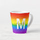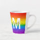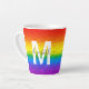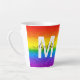 Genießen Sie Ihren morgendlichen Kaffee in stilvollem Ambiente mit diesem Glitzer und der verglasten Latte Tasse. Das schicke, mit Regenbogen gestreifte Design umfasst Rot-, Orange-, Gelb-, Grün-, Blau- und lila Imitat-Glitzer mit einem Monogramm, das zunächst in Weiß und Name in modernem Schwarz-Script für Sie personalisiert. Zeige deinen Stolz!
