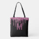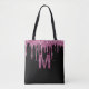 Tragen Sie diesen maßgeschneiderten Glitzer und Glam Tote-Tasche im Stil. Dieses moderne Design besticht durch einen Rand oben auf den himbeerrosa Imitaten, die Glitzer mit Glitzern tropfen. In der Mitte ist Ihr Monogramm Initial mit Ihrem Namen in einem modernen handgeschriebenen Skript auf einem Hintergrund von schwarz. Ein einzigartiges Geschenk für dieses besondere Mädchen in deinem Leben. Entworfen für Sie von Extreme T-Shirts!