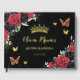 Chic Red Black Floral Butterfells Quinceanera Gold Gästebuch