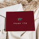 Dieser schicke rote Grade Abschluss Dankeschön-Karte ist perfekt für eine moderne Abschlussfeier. Das schlichte Design zeichnet sich durch eine klassische dunkelbordeauxrote und weiße Typografie mit einem schwarz-goldfarbenen Abschluss-Hut aus. Verlass den Rücken leer, um eine persönliche Nachricht zu schreiben, oder lassen Sie eine Danksagung und Update auf der Rückseite gedruckt.
