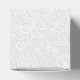 Elegantes Weiß auf weißem filigranem Druckmuster mit Ihren Namen in chic cranberry rot (oder irgendeiner Farbe) Schrift, diese 2" quadratischen Gastgeschenk-Boxen sind schön für Gastgeschenke Hochzeiten, Brautparty-Gefallen oder jeden besondere Anlass.