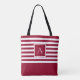 Herrlich! Diese schicke, rot-weiße stripe Tasche ist perfekt für alles - zum Strand, zum Picknick, zur GRILLEN, zum Shopping, zum Urlaub, zum Boot und so weiter - wie wir gesagt haben, alles, und deshalb werden Sie sie die ganze Zeit benutzen! Die knusprigen, roten und weißen Streifen sind über einem roten Farbblock am unteren Rand zu sehen, und das erste Monogramm zeigt sich in der Mitte der Streifen in einem prächtigen Schriftart aus weißer Schriftrolle auf einem roten Quadrat mit weißem Rand. Modern, zeitlos, elegant und elegant!