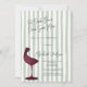 Chic Red Wine Glass Green Striped Einladung