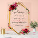 Elegantes, rosa rosa Bordeaux und Imitate goldenes Hochzeitsacrylat-Begrüßungszeichen mit schönen Blume und grünen Blätter. Eine bezaubernde Mischung aus Eleganz und romantischem Charme. Diese schönen Einladungen sind in Rosa und Rot gehalten. Die Kalligraphie ist elegant und schick und lässt sich leicht anpassen. Romantische und moderne blumengeschmückte Hochzeitsfeiern mit klassischen Farben, die nie aus dem Stil verschwinden.