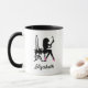 Personifizieren Sie, indem Sie Ihren Namen diesem Chic und stilvolle Tasse mit einer Silhouette einer Frau der Mode hinzufügen und geheilte Schuhe des heißen Rosas Hoch mit den niedlichen Bögen tragen, an einer Make-upeitelkeit sitzen und ihre girly Fashionistareflexion in einem Spiegel bewundern.