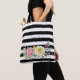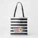 Mit einer Touch modernem Chic in der Dekoration erwartet Sie diese trendige, schwarz-weiß gestreifte Tasche, die mit romantischen Rosen und Rosen in Rosa und Gelb verziert ist. Dieses wunderschöne, blumengestreifte Design wird durch den Zusatz Ihres Namens individuell gestaltet.