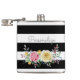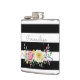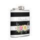 Chic Rose Floral Trendy Black Stripes und Name Flachmann