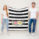 Chic Rose Floral Trendy Black Stripes und Name Fleecedecke