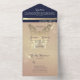 Machen Sie Ihren besonderen Tag unvergesslich mit dieser schicken Rose Gold und Marineblau All-in-One Hochzeitseinladung. Mit eleganten goldenen Blumenakzenten, einem zarten Schmetterlingsmotiv und einem eleganten marineblauen Hintergrund verbindet dieses Design Luxus und Romantik perfekt. Das klappbare Format mit UAWG macht es bequem und stilvoll für Ihre Gäste. Ideal für moderne und klassische Hochzeiten. Bitte beachten Sie: Diese Einladung erfordert einen separaten Briefumschlag. Wir empfehlen die Verbindung mit einem A9-Umschlag (5,75" x 8,75") für die beste Passform.