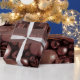 Weihnachtsdekoration Chic Rose Gold Baubles Fotografie Elegantes Weihnachtsgeschenk Wrapping Paper mit Imitaten Band und Sondertext "Wir wünschen Ihnen ein frohes Weihnachtsfest! Mit Liebe The Williams Family" können Sie den Text ändern oder löschen