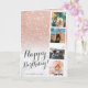 Eine schicke, mädchenhafte und moderne Rose Gold Glitzer ombre Glitzern auf weißem Marmor Foto Happy Geburtstag Grußkarte. Fügen Sie 6 Ihrer Lieblings-Fotos mit einem eleganten Signatur-Script-Schriftart hinzu.