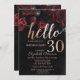 Chic Rote Rosen Black 30. Geburtstag Party Einladung