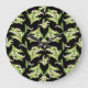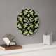Eine schicke Rundmauer-Uhr mit einem Jugendstil-Muster von Lilies-of-the-Valley auf schwarzem Hintergrund; aus der Posh & Painterly Kollektion "Zur Liebe von Lilies".