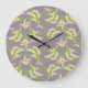 Eine schicke Rundmauer-Uhr, mit einem Jugendstil-Muster von Lilies-of-the-Valley auf mauvischem Hintergrund; aus der Posh & Painterly Kollektion "Zur Liebe von Lilies".